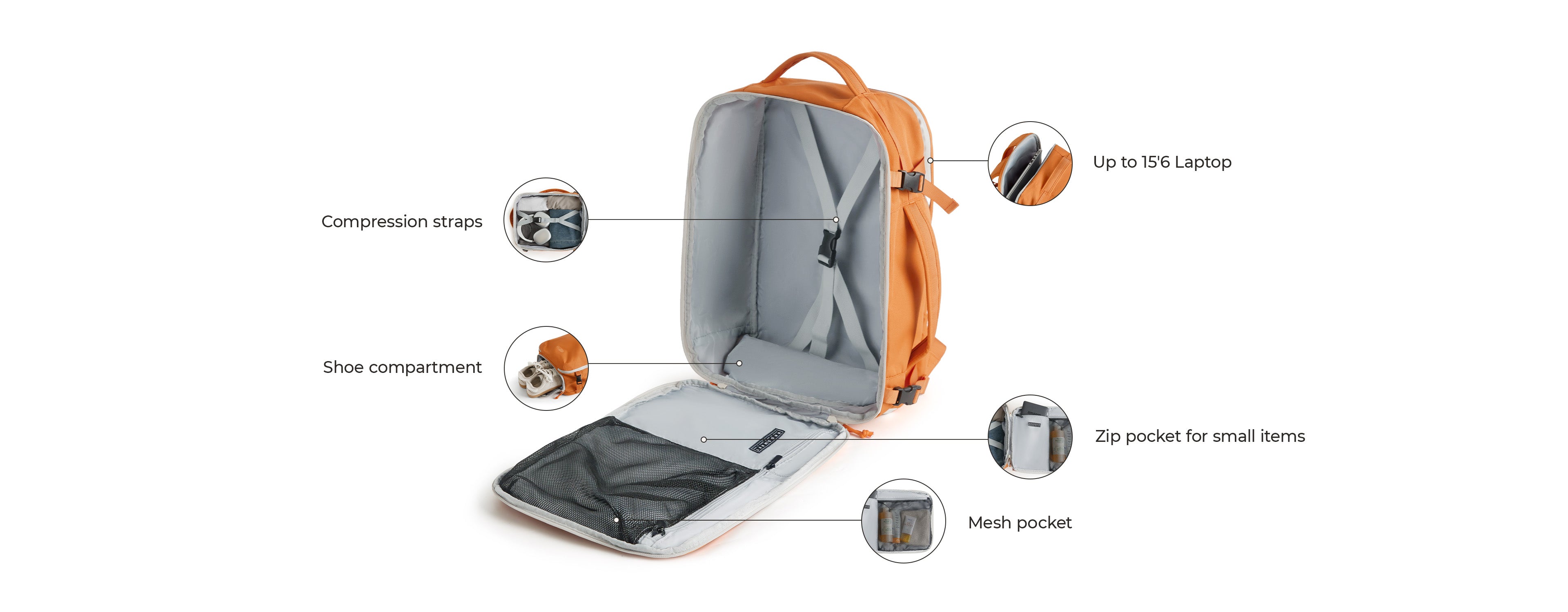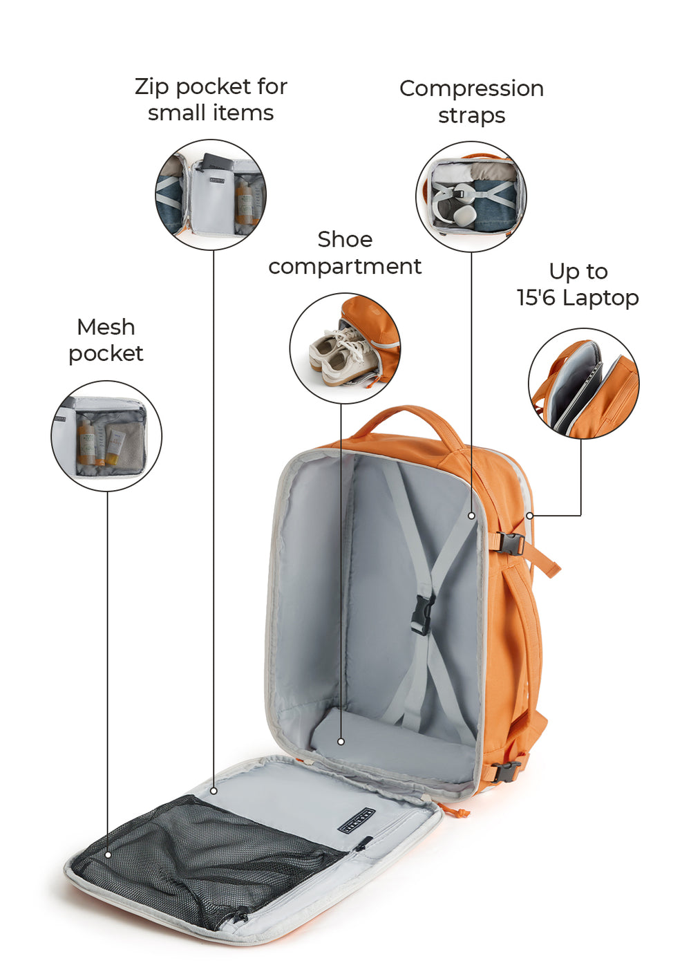 Blast Quick Access 28L-38L Carry On Travel Backpack — Color Beige