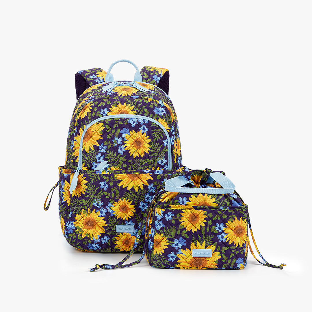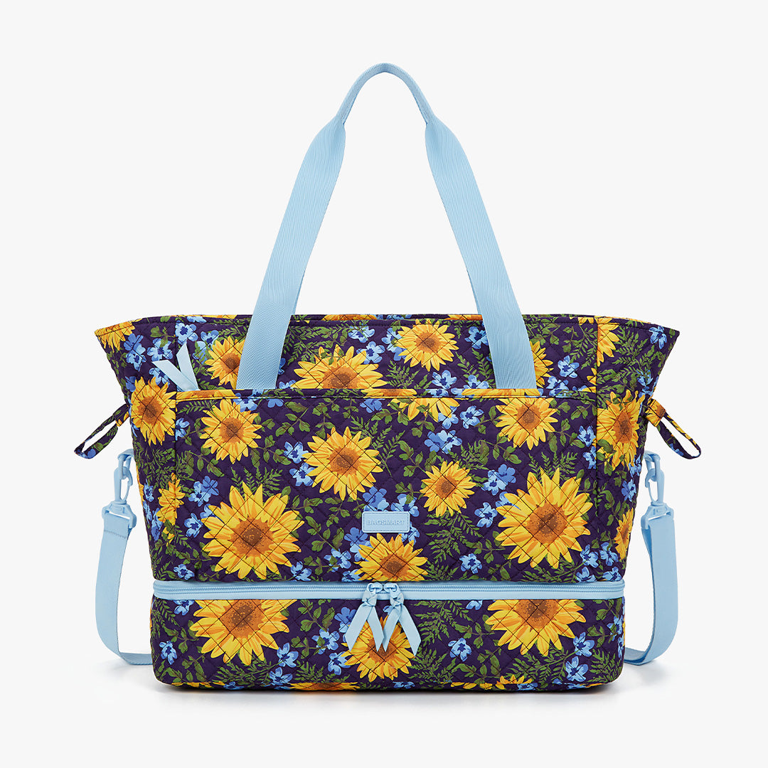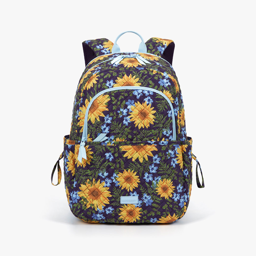 The captivating combination of midnight blue and luminous yellow sunflowers in the pattern of Sunflower Rhapsody dances along a backdrop dappled with emerald leaves and petite white flowers- a timeless art to evoke vitality and make bold statement all season long.