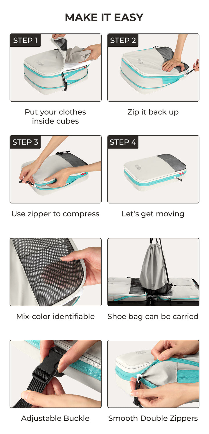 - Blast 6PCS Compression Travel Packing Cubes – Maximize your luggage space with compression zippers and breathable mesh panels. These packing cubes keep your essentials neatly organized, making packing and unpacking hassle-free.