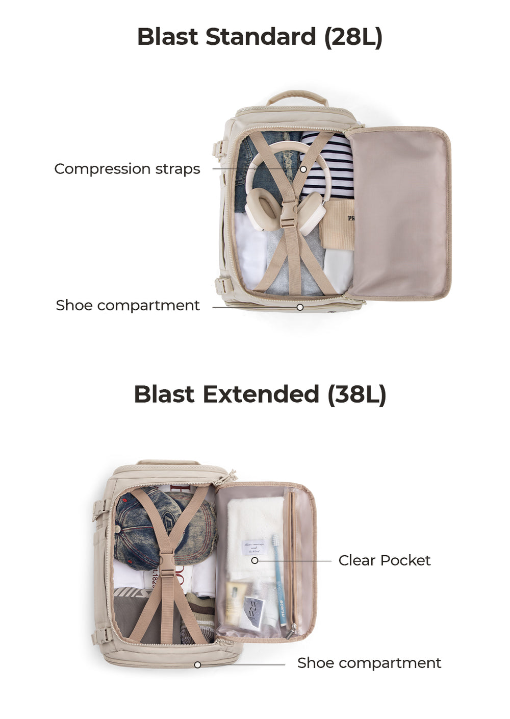 - Blast Quick Access 28L-38L Carry-On Travel Backpack – Stay organized with six external quick-access pockets, a TSA-friendly 180° laptop compartment, and a ventilated shoe compartment. Lightweight and airline-approved, it’s built for effortless travel.