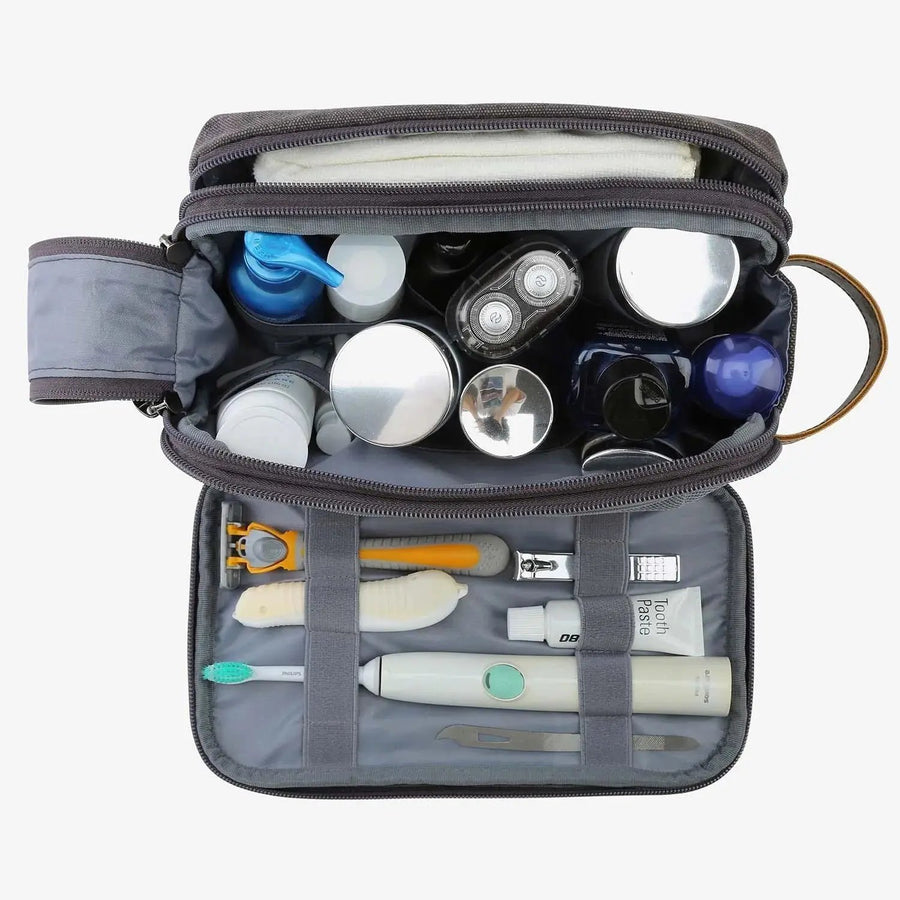 The On-road Toiletry Bag is an all-in-one style that can be used as a toiletry bag, shaving kit, or cosmetic bag. Crafted in water-resistant fabrics, the toiletry bag for travel is equipped with many compartments for the perfect organization of all your toiletries and shaving supplies. Features one front waterproof pocket to keep the wet/dry items separated, and one back pocket that can be laid flat for easy organization.