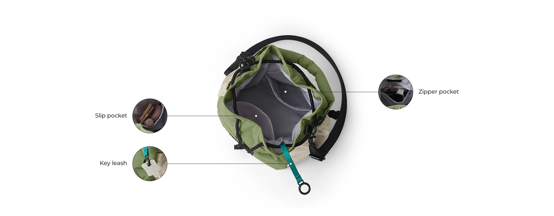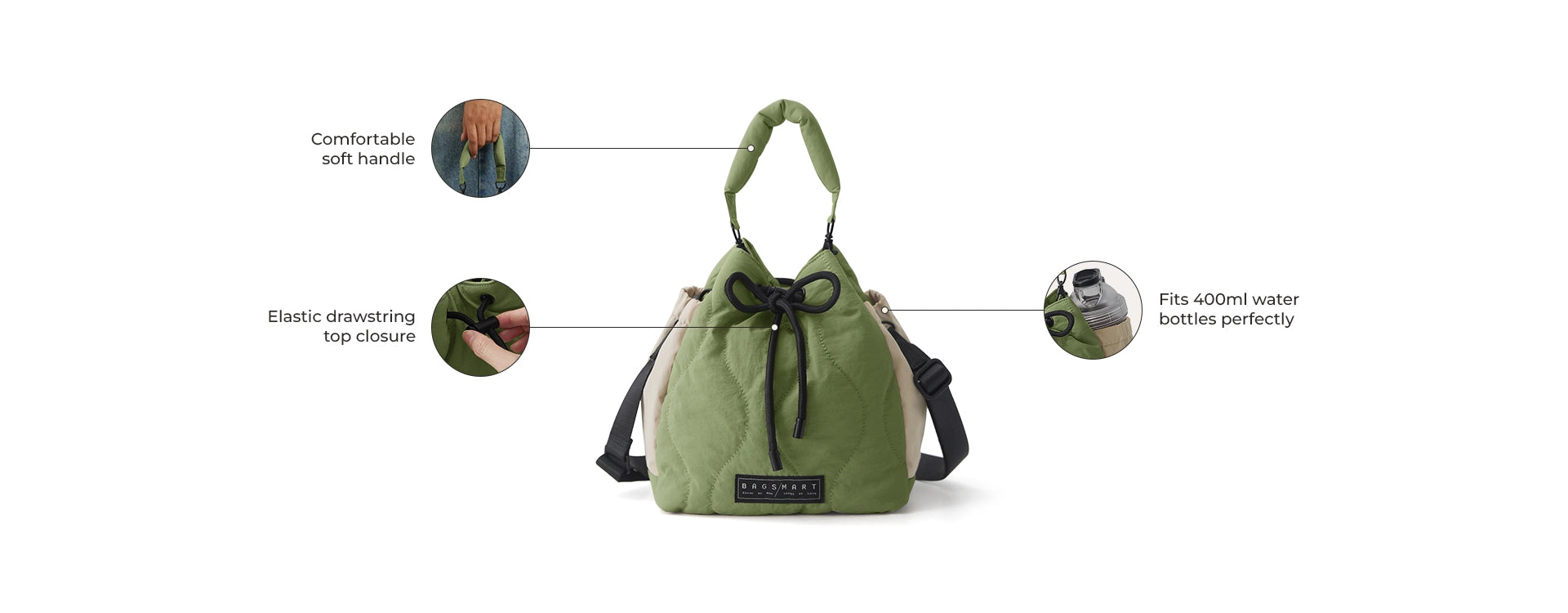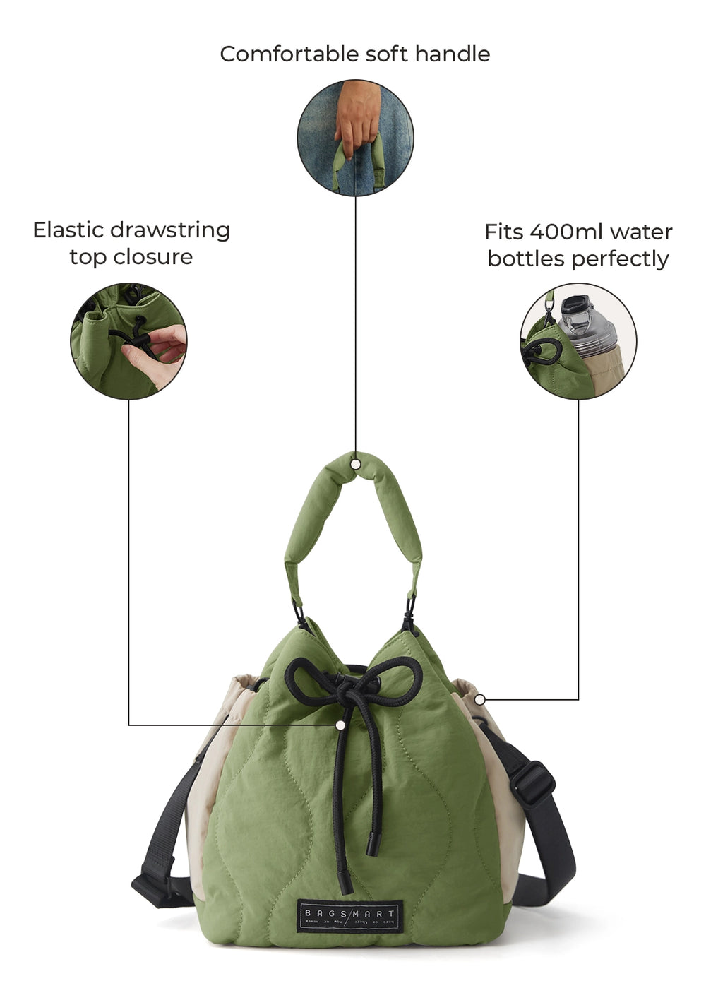 • Wide drawstring opening keeps your essentials visible, not loose