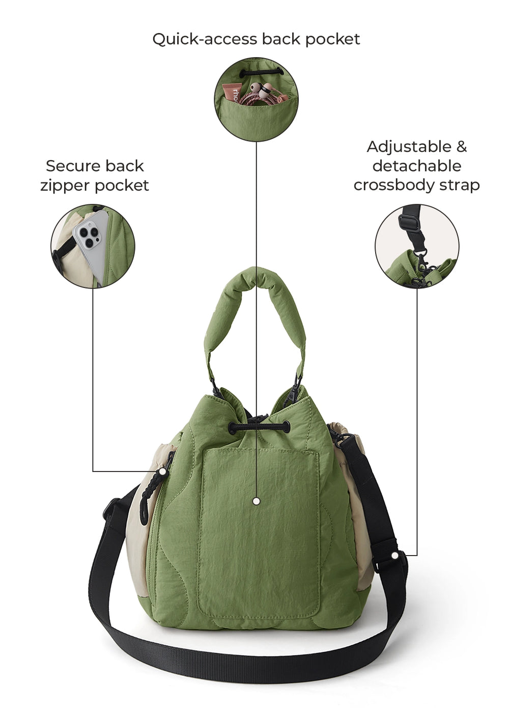 Small in size, big on versatility. This one does it all without making a scene. Compact, convertible, and quietly stylish, the Paz Bucket Bag is built for life on the move. With smart storage, easy-access pockets, and multiple ways to wear, it’s your go-to for commutes, coffee runs, and wherever the weekend takes you.