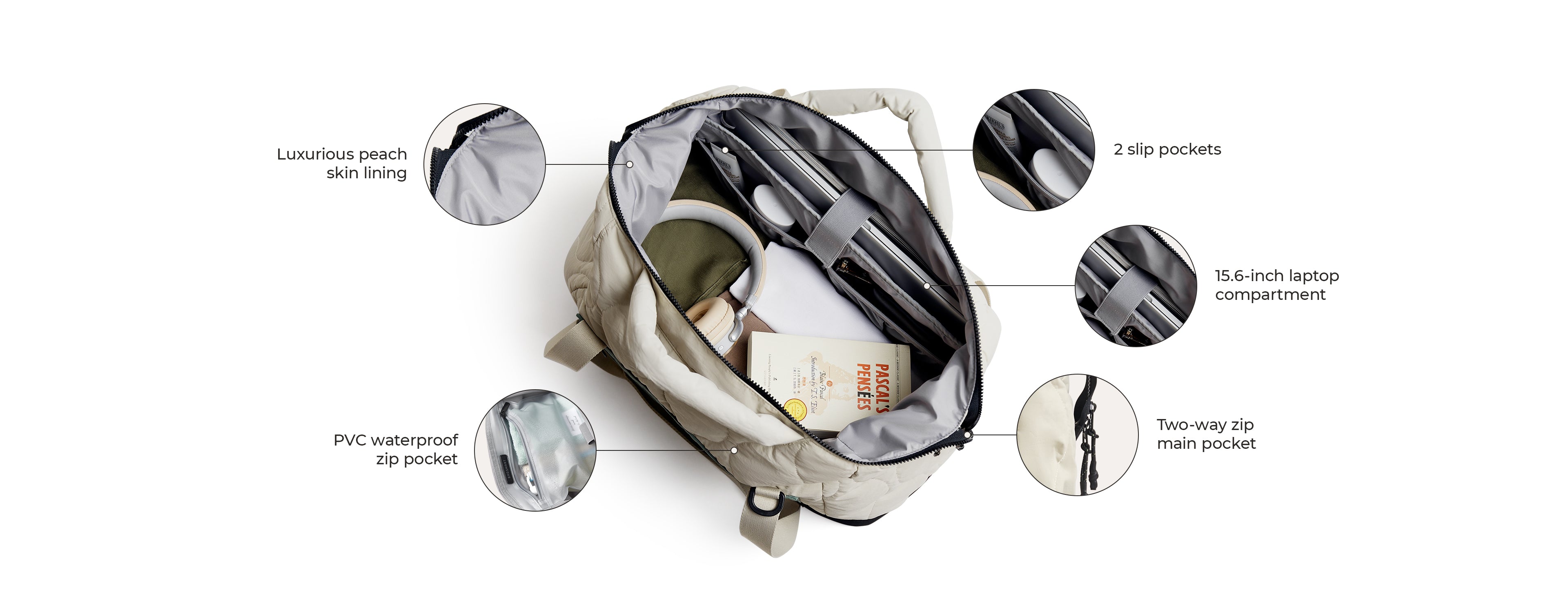 Dedicated laptop compartment fits up to 15.6-inch devices, providing extra protection and convenience.
