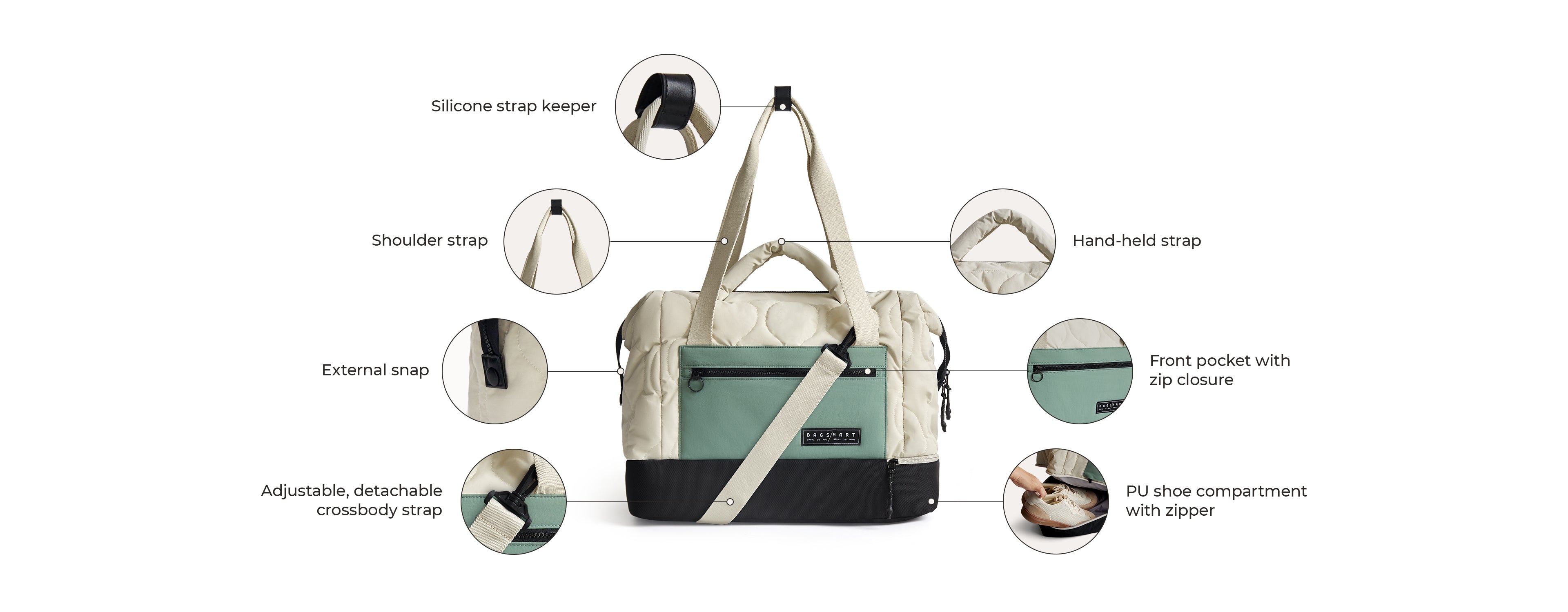 Keep your shoes organized and separate with a convenient PU compartment featuring a secure zipper closure, perfect for gym or travel.