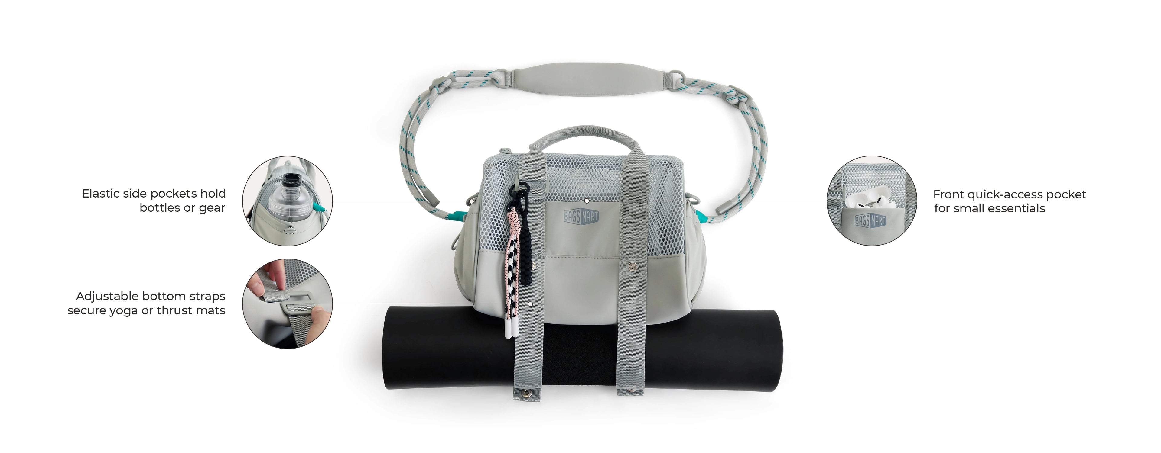Adjustable bottom straps let you carry your yoga mat or workout pad—no awkward juggling required.